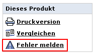 Klicken Sie einfach auf den Link, den Sie auf jeder Produktdetailseite finden. Im Fehler-Formular können Sie ankreuzen, wo sich der Fehler befindet, einen erläuternden Kommentar hinzufügen und Ihre E-Mail-Adresse vermerken, falls Sie von uns eine Rückmeldung erhalten möchten.