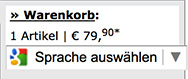 Mit einem Klick auf den roten Button legen Sie ein Produkt in den Warenkorb. Wenn Sie sich anschließend den Warenkorb anzeigen lassen, finden Sie dort Ihre Produkte, die zur Auswahl stehenden Versand- und Bezahloptionen und den jeweils aktuellen Gesamtpreis Ihrer Bestellung inkl. Steuern und Versandkosten.